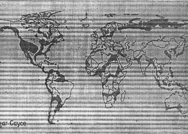 Карта изменения рельефа Земли в ближайшем будущем по предсказанию Эдгара Кейси