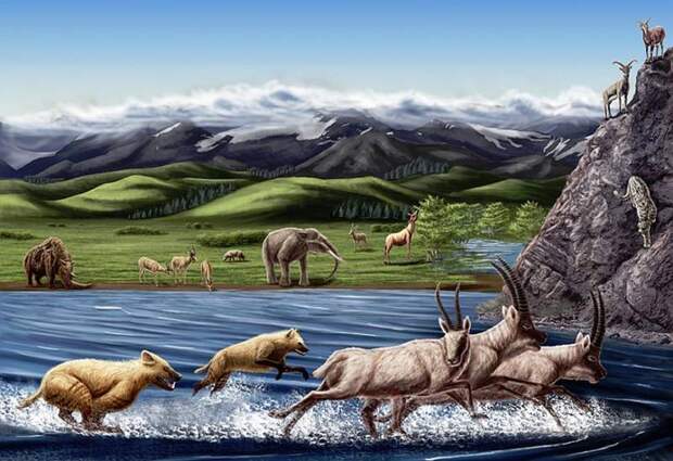 Материк этот был способен прокормить огромные стада крупных животных: мамонтов и шерстистых носорогов, овцебыков и лошадей, арктических бизонов, сайгаков, яков, не говоря уж о бесчисленных мелких животных. Не случайно их костями усеяна вся Арктика, включая и морской арктический шельф.